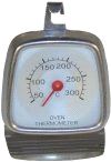 Ovnstermometer med gradering i Celsius. Skala fra 50 til 300 grader Celsius. Kan også benyttes i varmeskap. Står eller henger. Mål: H 84 x B 62 x D 30 mm.