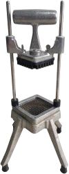 Vår potetkutter/chipskutter, CK9, er et tids-og arbeidsbesparende redskap til å kutte poteter, frukt og bær i nøyaktige firkantede strimler. Gitteret/knivene er på ca 9x9mm. Enkel å bruke, dermed får du et perfekt resultat enten du er lærling eller erfaren kokk/bartender. Produsert i Kina av aluminium og rustfritt stål. Enkel å stue vekk når den ikke er i bruk (opptar ikke verdifull benkeplass). Mål: H 483 x B 203 x D 203 mm.