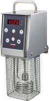 Sirkulasjonsvarmer/Soft Cooker/roner benyttes til å varme/regenerere/tilberede mat i vakuumposer/Sous Vide poser. Vannet varmes og sirkuleres i en beholder, f eks 1/1-200 GN bakke. Kan festes på de fleste beholdere opp til 50 liter. Temperaturområde 20-100 grader. 1-fas tilkobling, 2 kW. Vekt 4,5 kg. Miljøgebyr kommer i tillegg.